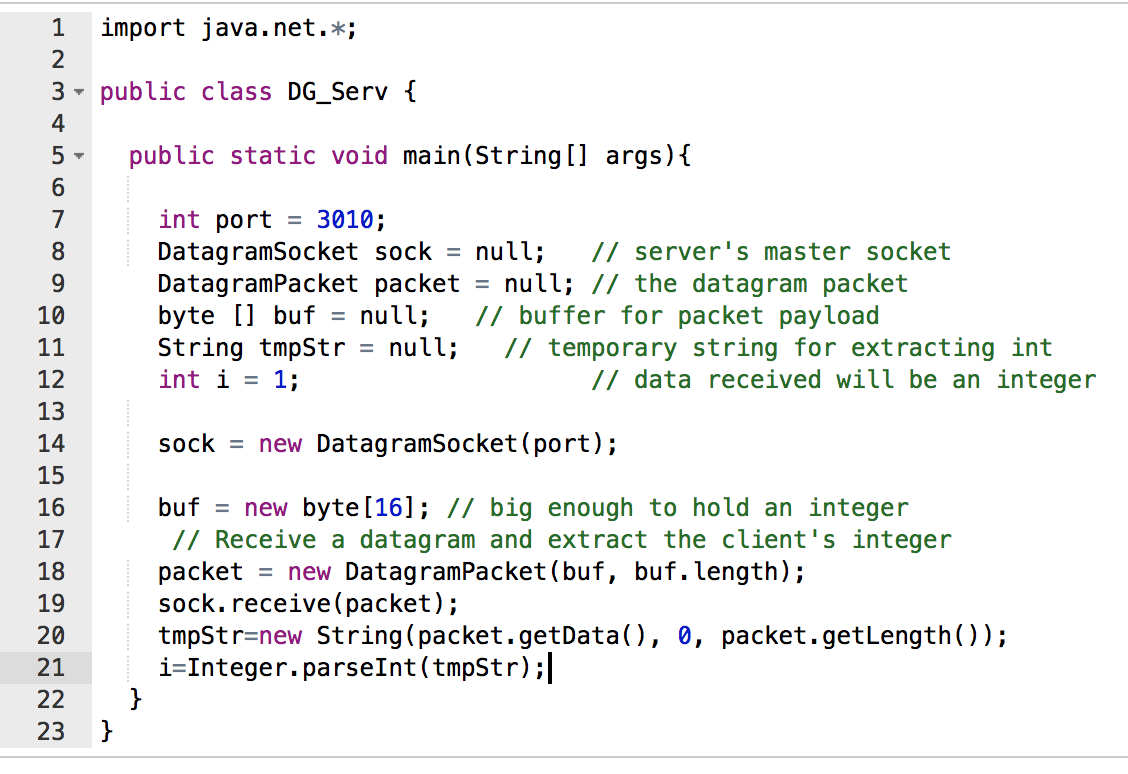 In general what is the server code for a Datagram Socket?
