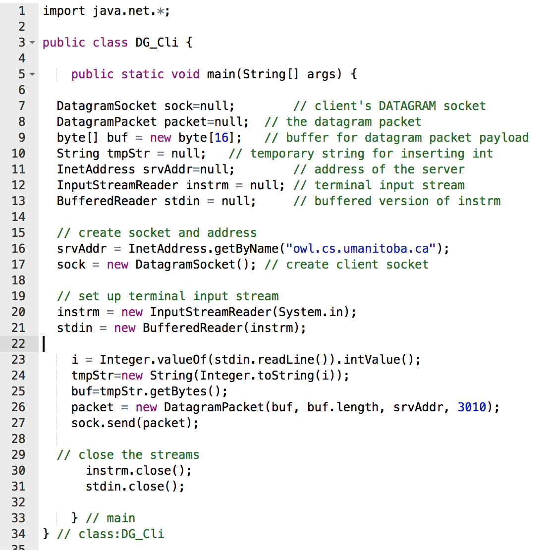 What is the general client code for a Datagram Socket