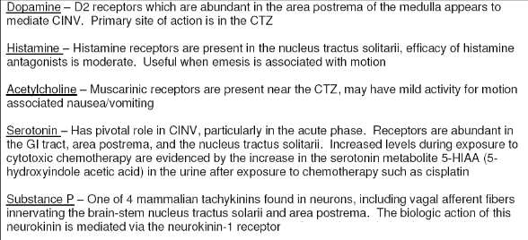 Neurotransmitters implicated in CINV (5)