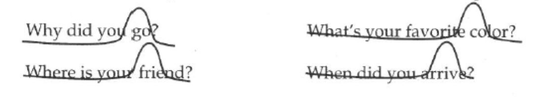 “Wh” questions begin with: where, what, why, when, which, how, and they often have the rise-fall pattern at the end.
