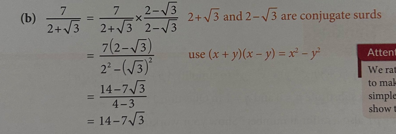 rationalise 7/(2+√3)