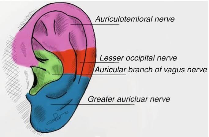 a) The Auriculotemporal nerve supplies the anterior part of the ear