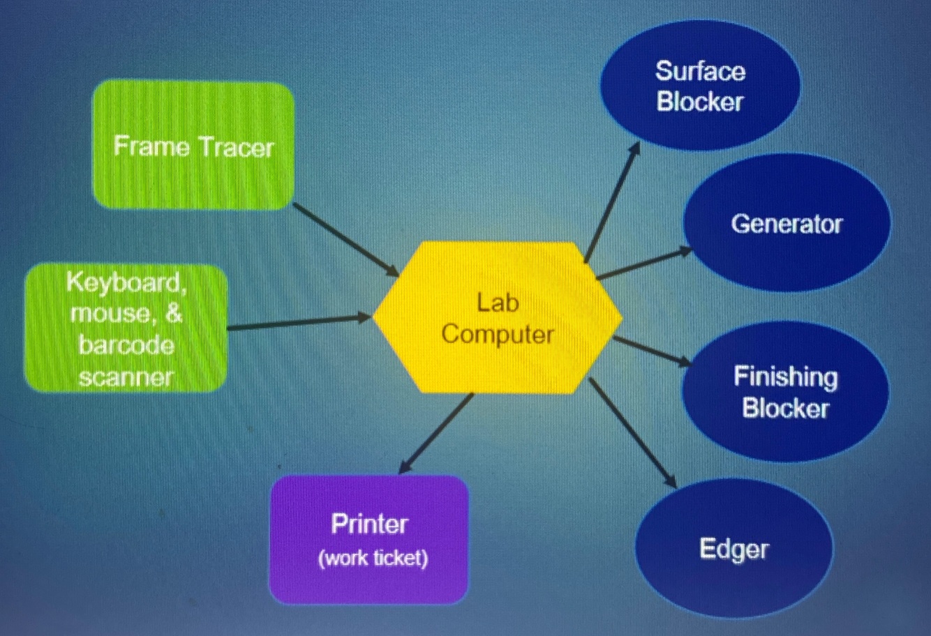 The process of creating the prescribed refractive power, prism , and major reference point (AKA PRP) location on a lens by generating the required curves and bringing the surface to a polished state.