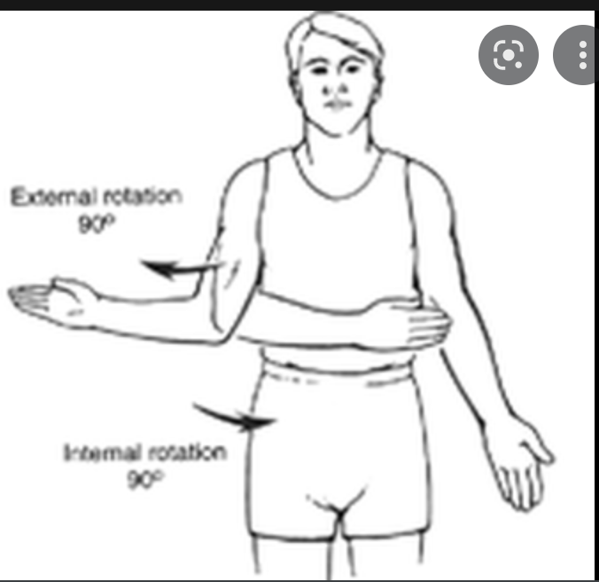 You review a middle-aged man with shoulder pain. He has limited movement of the right shoulder in all directions. Which of the following clinical findings is most consistent with a diagnosis of frozen shoulder (adhesive capsulitis)?