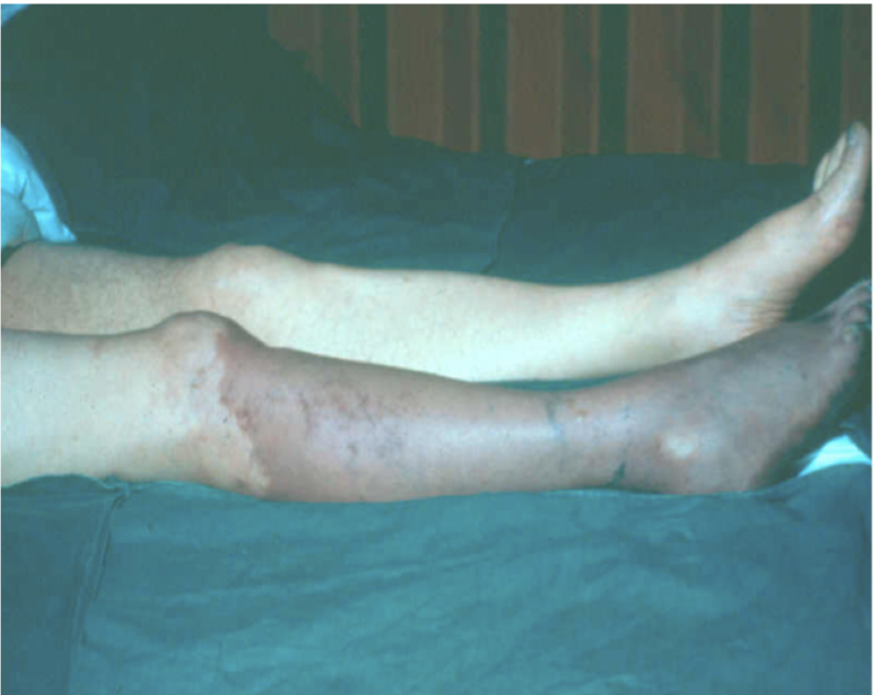 It is now too late to salvage the leg through intervention, as the leg is ‘dead’. This is inferred by the fact that the patient has lost sensation (dead nerves) and cannot move it (dead muscle). Fixed mottling demonstrates that there is no blood flow within the skin. Therefore, in this situation the open option available (apart from a palliative approach) would be amputation, as there is no scope for revascularisation. If an ischaemic limb is not identified in time (less than 6 hours), this is the inevitable
