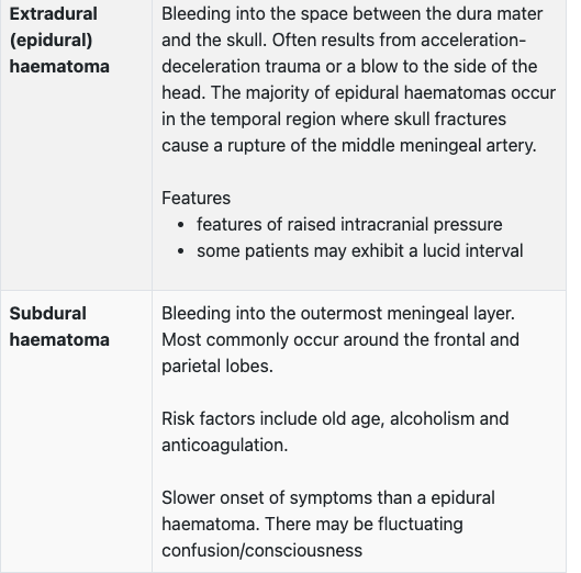presentation of extradural (epidural) haematoma vs subdural?