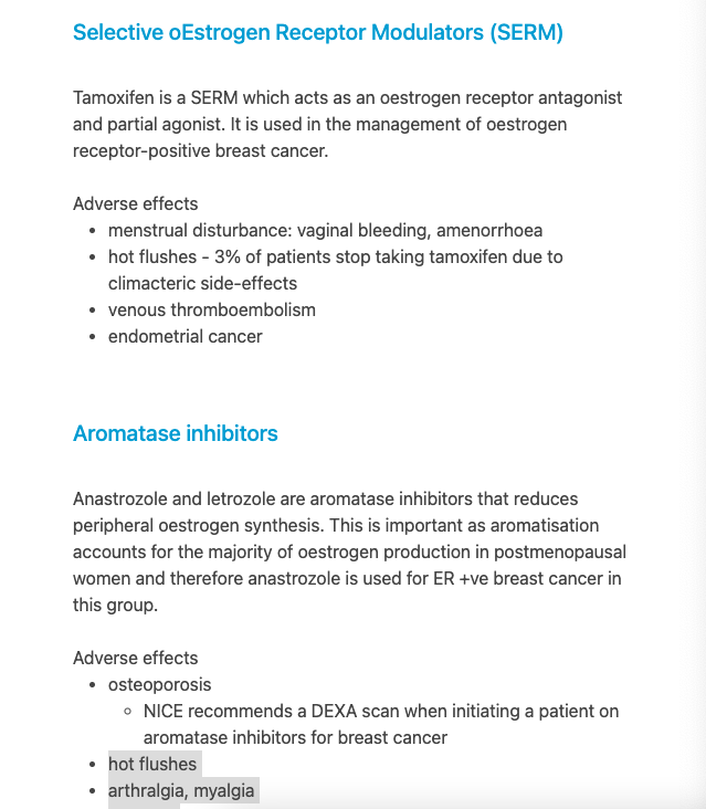 Aromatase inhibitors (e.g. anastrozole) vs SERM may cause