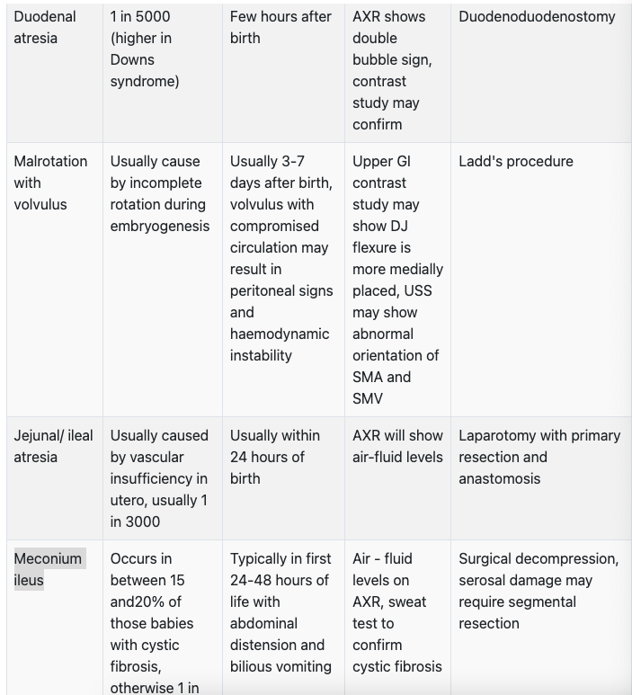 Duodenal atresia VS Malrotation with volvulus VS Meconium ileus