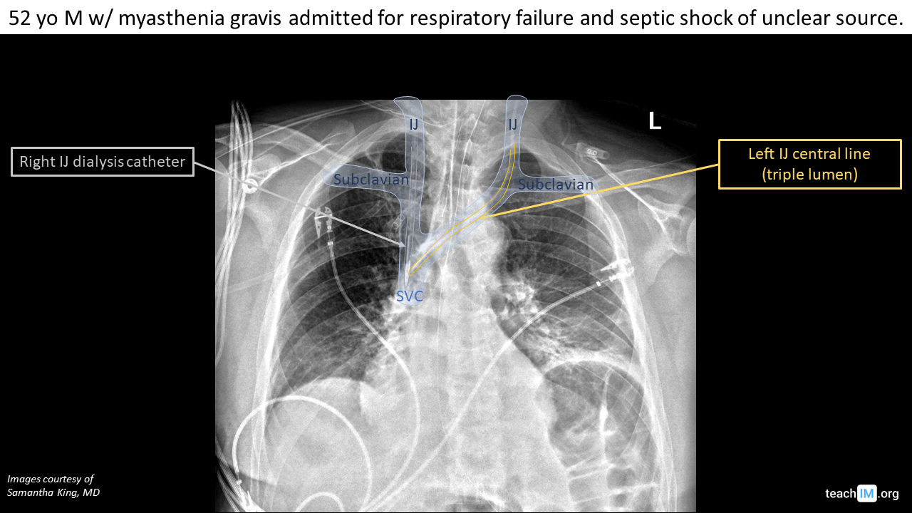 Realizar CXR portátil posterior a su colocación y previo a la administración de medicamentos: punta del catéter debe estar proximal al ángulo entre la tráquea y el bronquio principal derecho