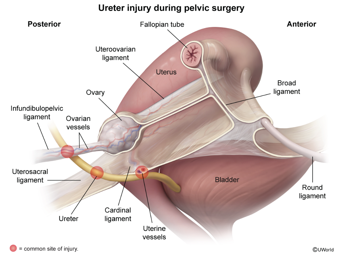 Sitios posibles de lesión ureteral en cirugía pélvica