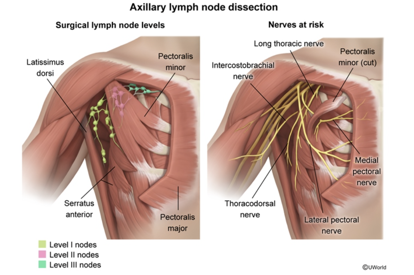 Ganglios linfáticos axilares y su relación con el pectoral menor