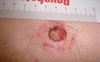 Fistula formation: pancreato-cutaneous due to skin breakdown