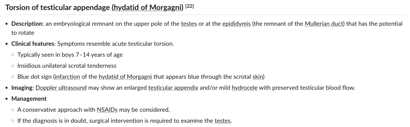 - Torsion of the hydatid of Morgagni is more common than Testicular torsion.
