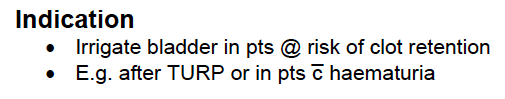 What is the indication for a 3-Way Irrigation Foley Catheter?