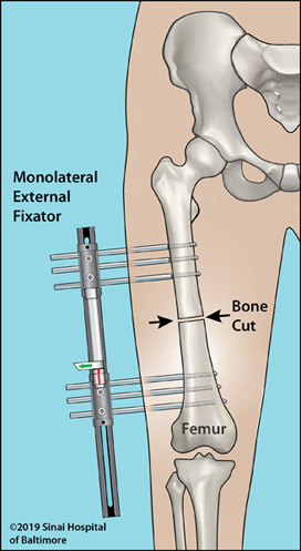 Use: When a tissue around the fracture is to distorted/swollen to be able to close in again after a potential surgery → to temporarily fixate the bone until swelling settles down → further surgery will be required to fix the bone properly