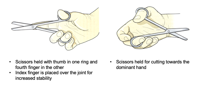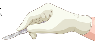 in a pen hold grip for stable and accurate cut or a palm/power grip for thicker and tougher tissue to be cut