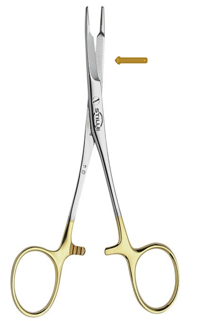Use: - Generally used to clamp small vessels - Small jaws with fine horizontal serrations extending entire length of jaw - Straight and curved tips