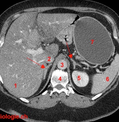 Surrénale droite dans la veine cave (difficile à canuler à canuler par le radiologiste)