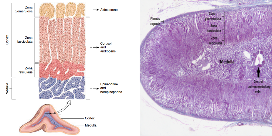 Différencier l’histologie du cortex et de la médulla des surrénales.