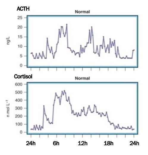 Horloge biologique qui contrôle la sécrétion hypothalamique de CRH. Sécrétion pulsatile du CRH → ACTH