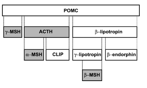 Elle est synthétisée sous la forme d’une pro-hormone générée par le clivage de la POMC (pro-opio-mélanocrotine)