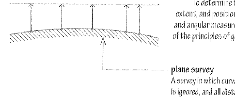 A survey in which curvature of the earth’s surface is ignored, and all distances and horizontal angles are assumed to be projected onto a horizontal plane.