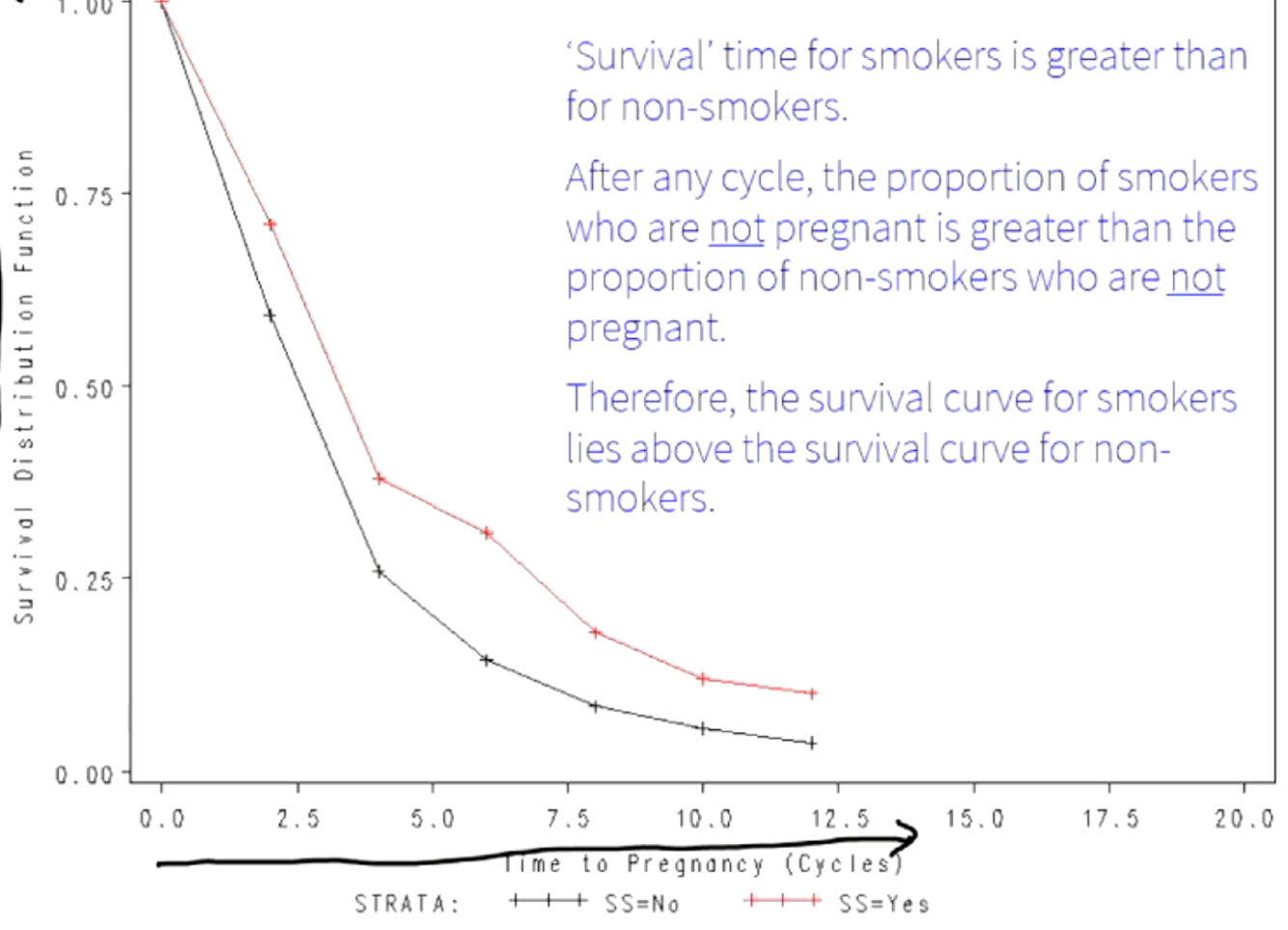 -cumulative gives probability of surviving both time periods