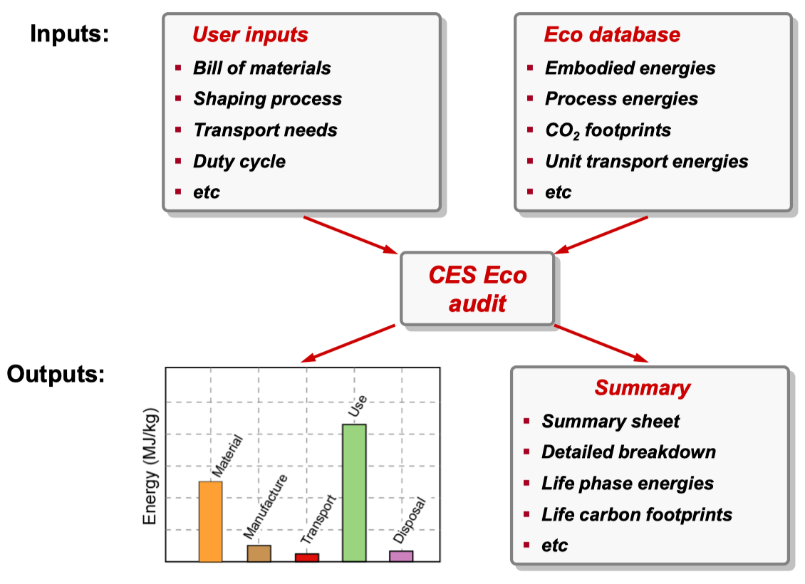 The eco-audit can be facilitated using CES. Assumptions may typically include details of the materials used.