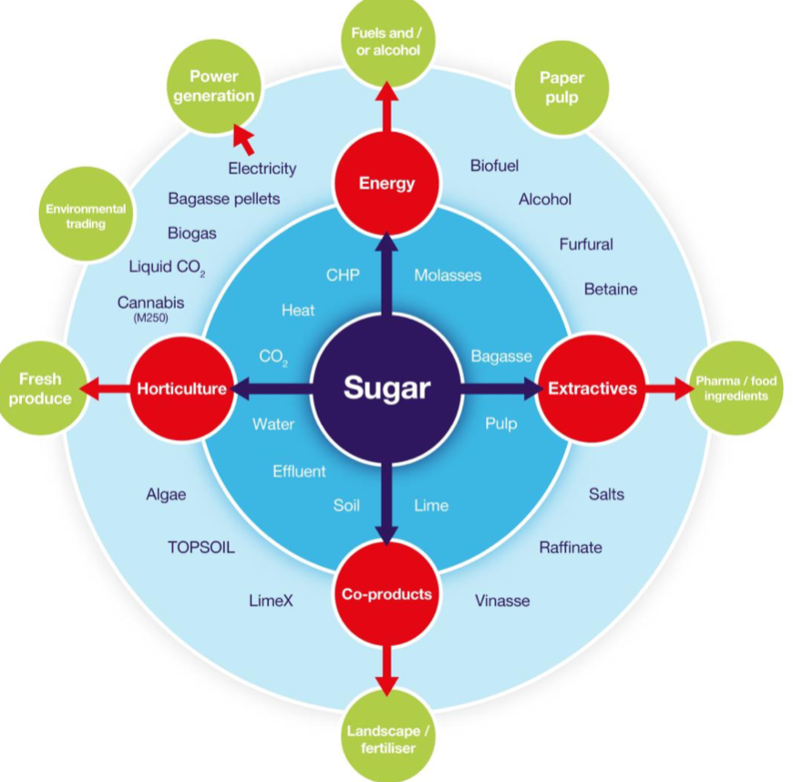 Explain the different waste streams that are utilised and sold in AB sugar