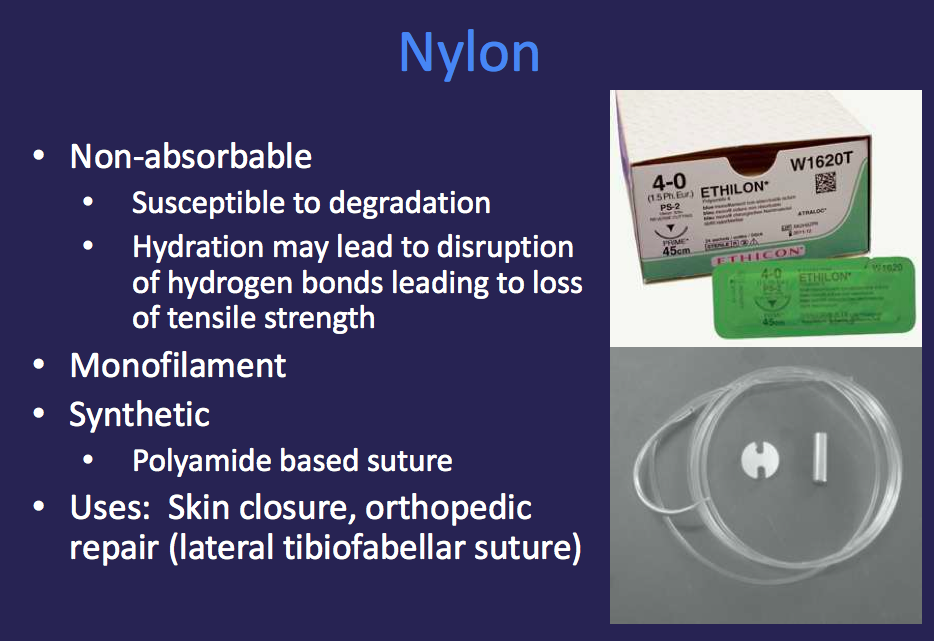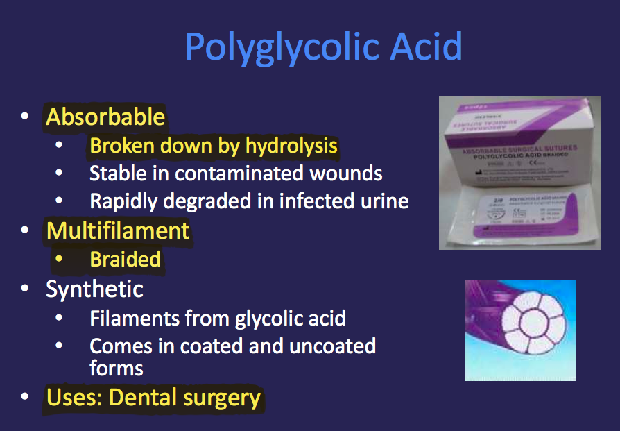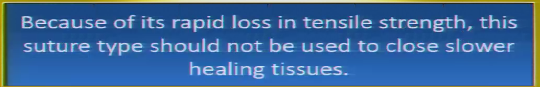 *Looses Tensile Strength Quickly. Don’t want to use in Wounds that are Highly Contaminated