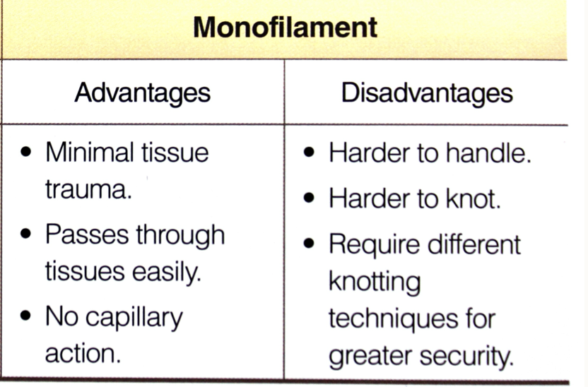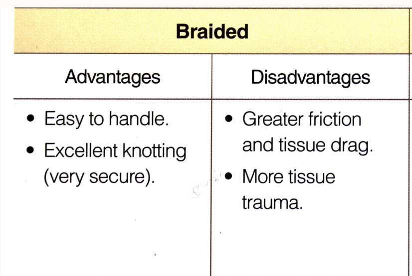 What are the advantages vs disadvantages of braided/multifilament suture material