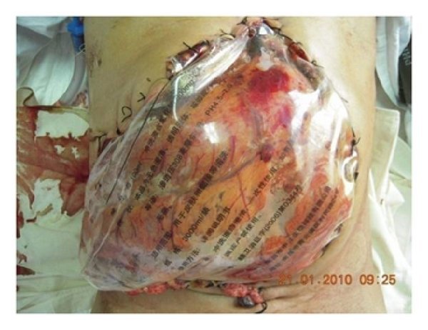 Viscera covered in granulation tissue