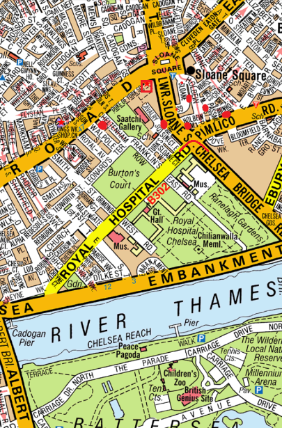 Sloane st Two Way Area: Lowndes square Arrival Details:Knightsbridge South into Sloane st SDOR or Pont st North into Sloane st SDOL Departure details: North FAR Cadogan place FAL Hans crescent, L Pavillion road, LorR Hans crescent South FAL/R Pont st