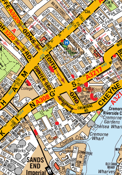 Soouth NRT Fulham or Kings road - Use Chelsea Park Gardens F Camera Place, L/R Limerston st