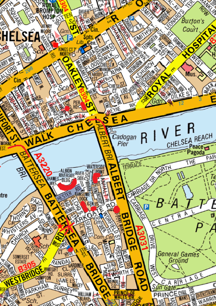 Arrival Details: West on Old Church st Departure details: North FAL Fulham road FAR South Parade South FAL Carlyle Square FAR Elm Park Road
