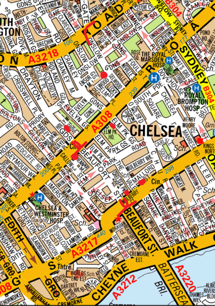 Old Church st One Way Area: Carlyle Square Arrival Details: Old church st, One way West into Elm Park road Departure details: North L/by Elm Park Gardens West LorR Beaufort st