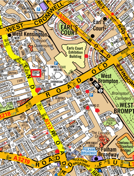 Warwick road, R+R Nevern Square, L Trebovir road SDOR