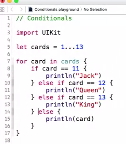 for item in nameofvar { println(item) } // Each value in array will be assigned individually to constant here named item. Than when exectuing command printing item, it repeats print function until reaching end of array For a range use: for number in 1…10 { println(“(number) times 2 is (number*2)” } //This includes 10: for until 9 use 1..10