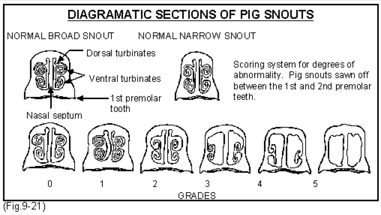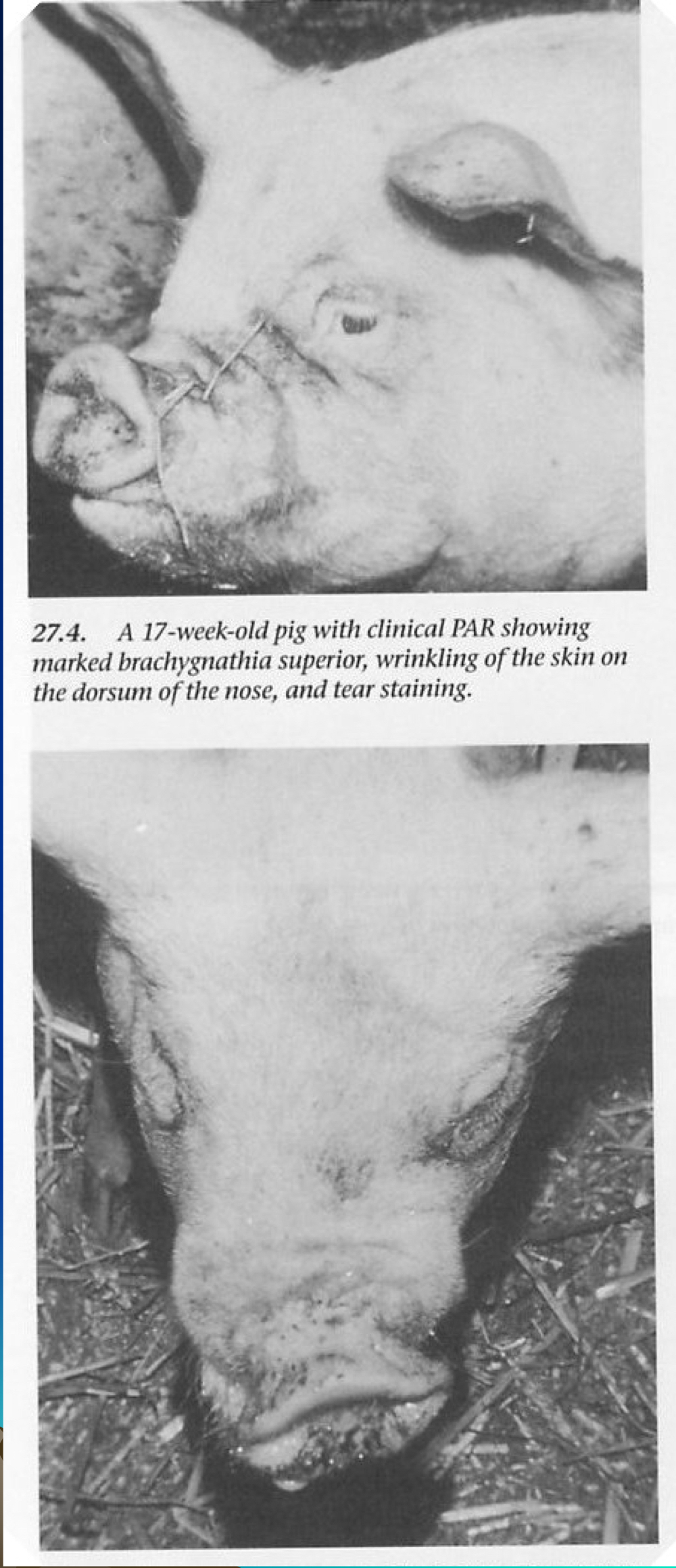 PIGLETS THRU FINISHING - respiratory disease, unthrifty, failure to thrive, increased secondary bacterial infections, increased mortality, decreased appetite, fever, rough haircoat, pneumonia, atrophic rhinitis