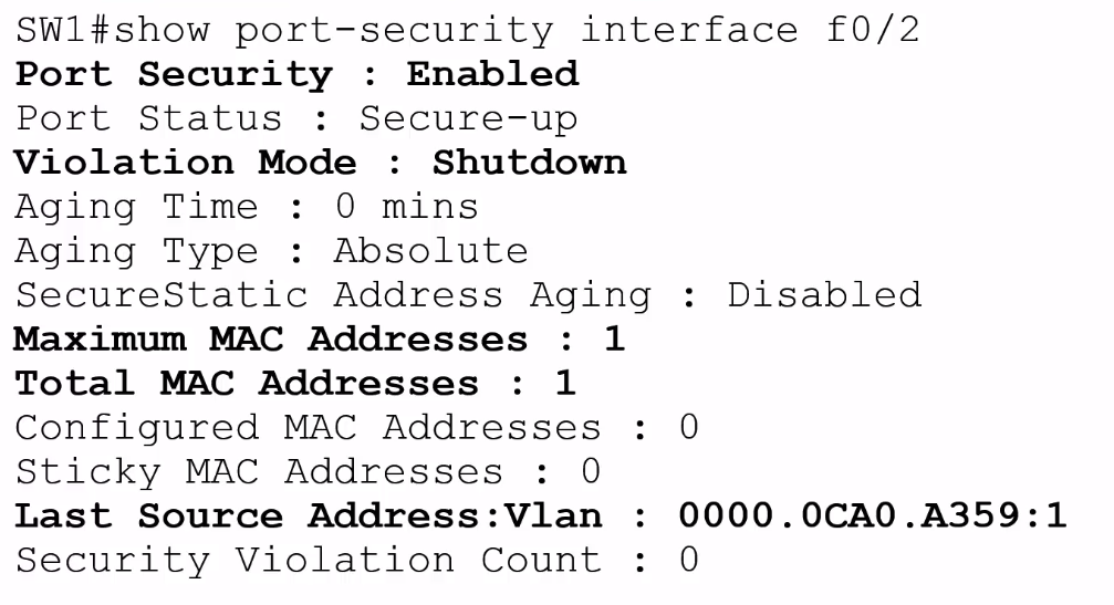 SW1# show port-security interface f0/1
