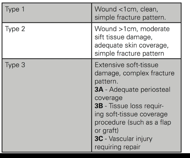 Describe the Gustilo classification system?