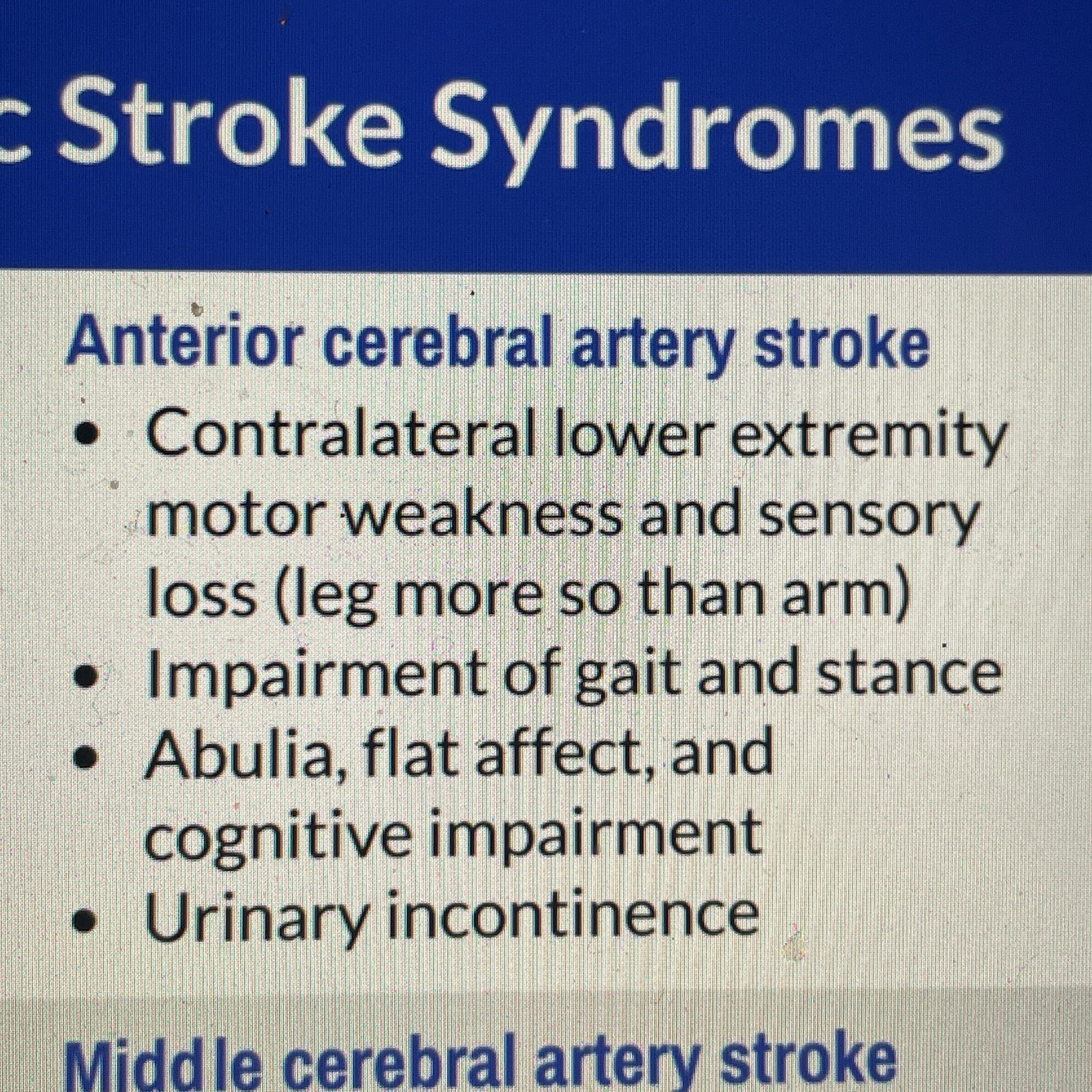 Anterior cerebral artery stroke