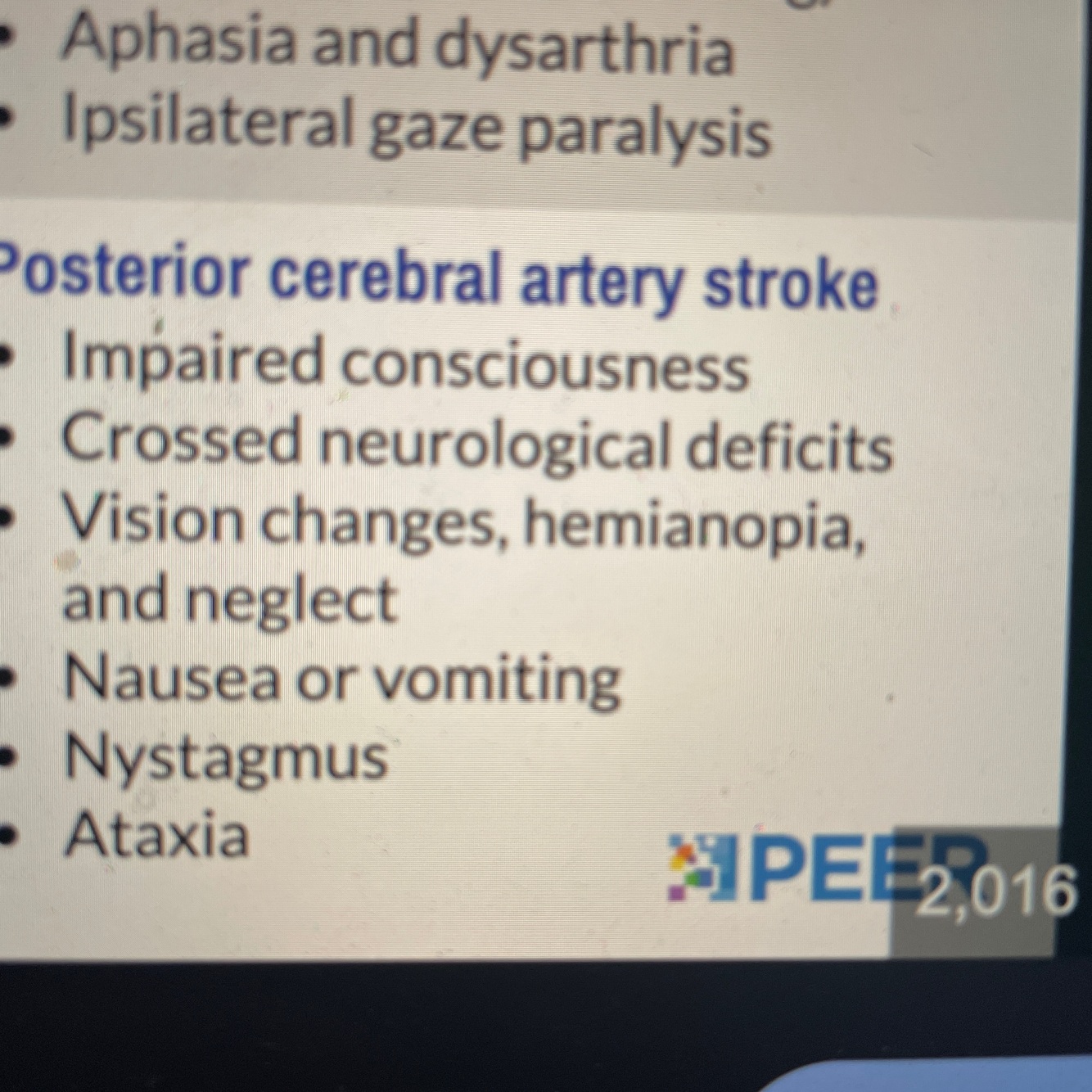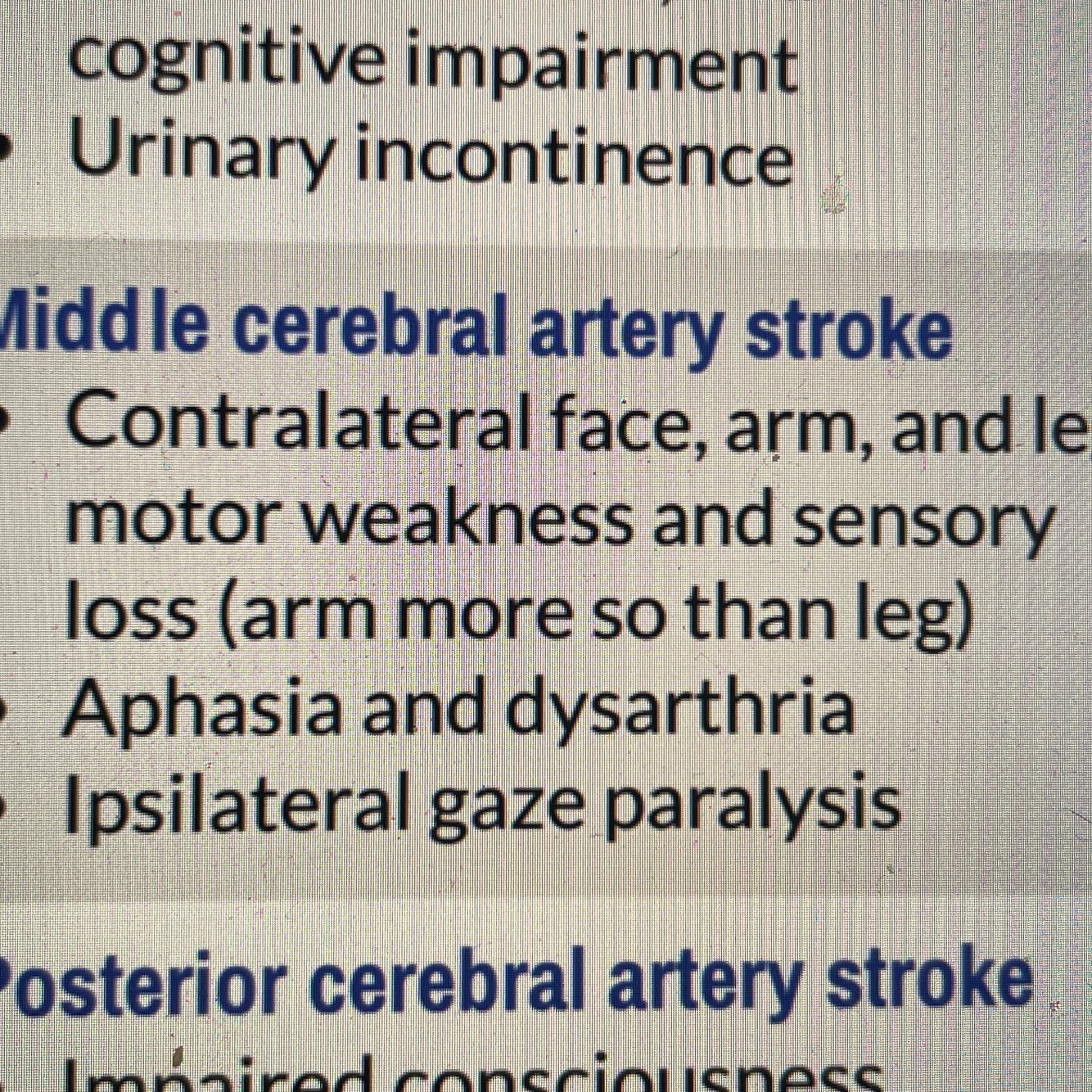 Symptoms of posterior cerebral artery stroke
