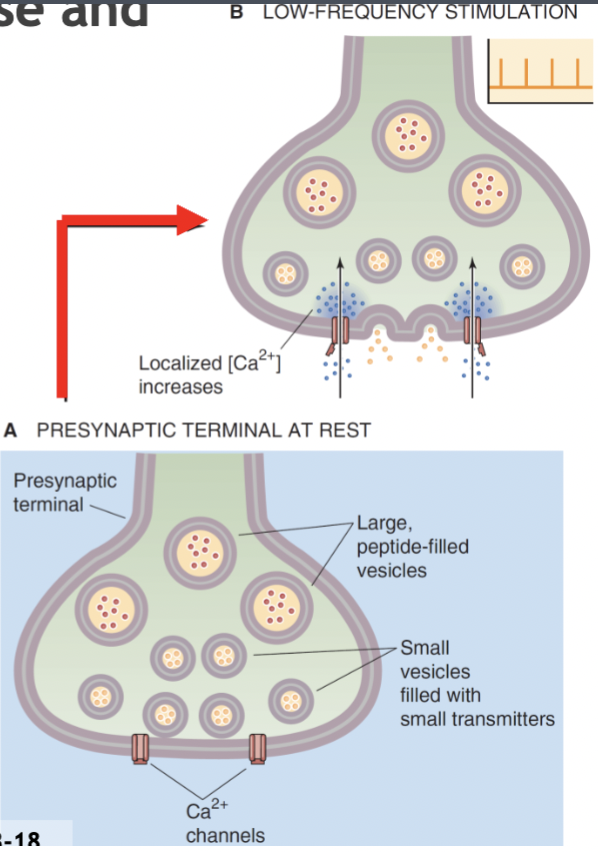 This scheme allows the neuron some control over the relative release of the two types of NT.