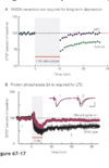 Late: four or more trains of synaptic stimulation induce a late LTP lasting up to 24 hours. IT does require cAMP and PKA, as well as changes in gene transcription and the synthesis of new proteins (long lasting due to structural changes)