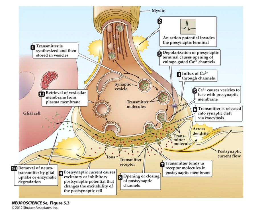 Sequence of events in a typical chemical synapse transmission