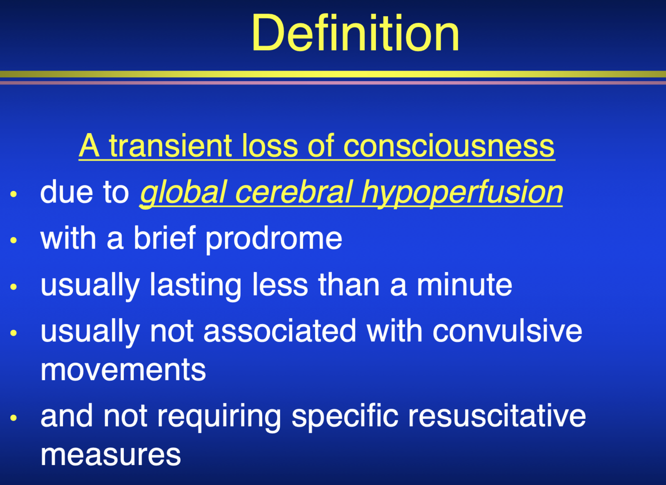 syncope is A transient loss of consciousness due to global cerebral hypoperfusion
