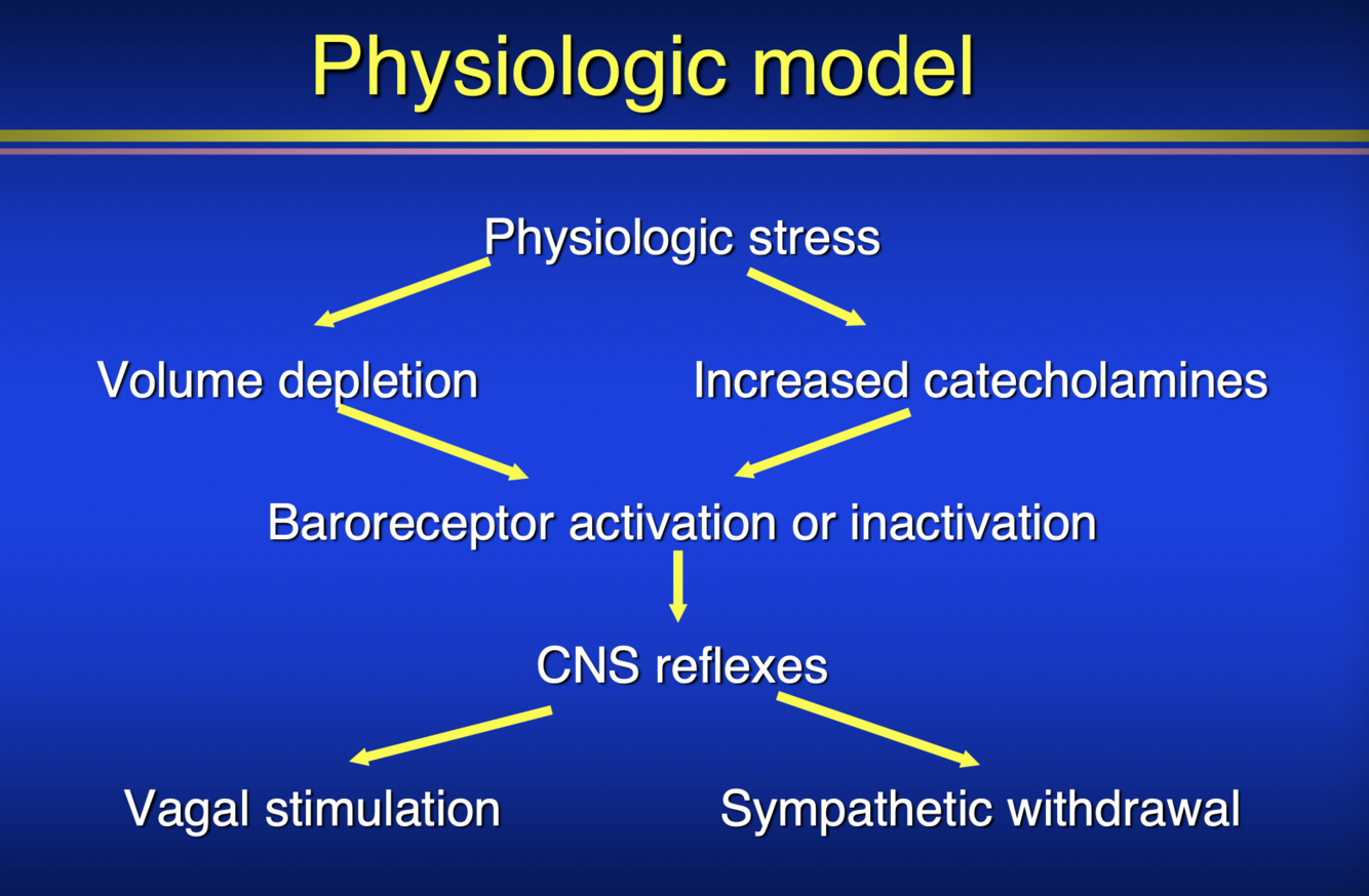 outline the physiological model of vasovagal syncope that causes reflex hypotension and bradycardia