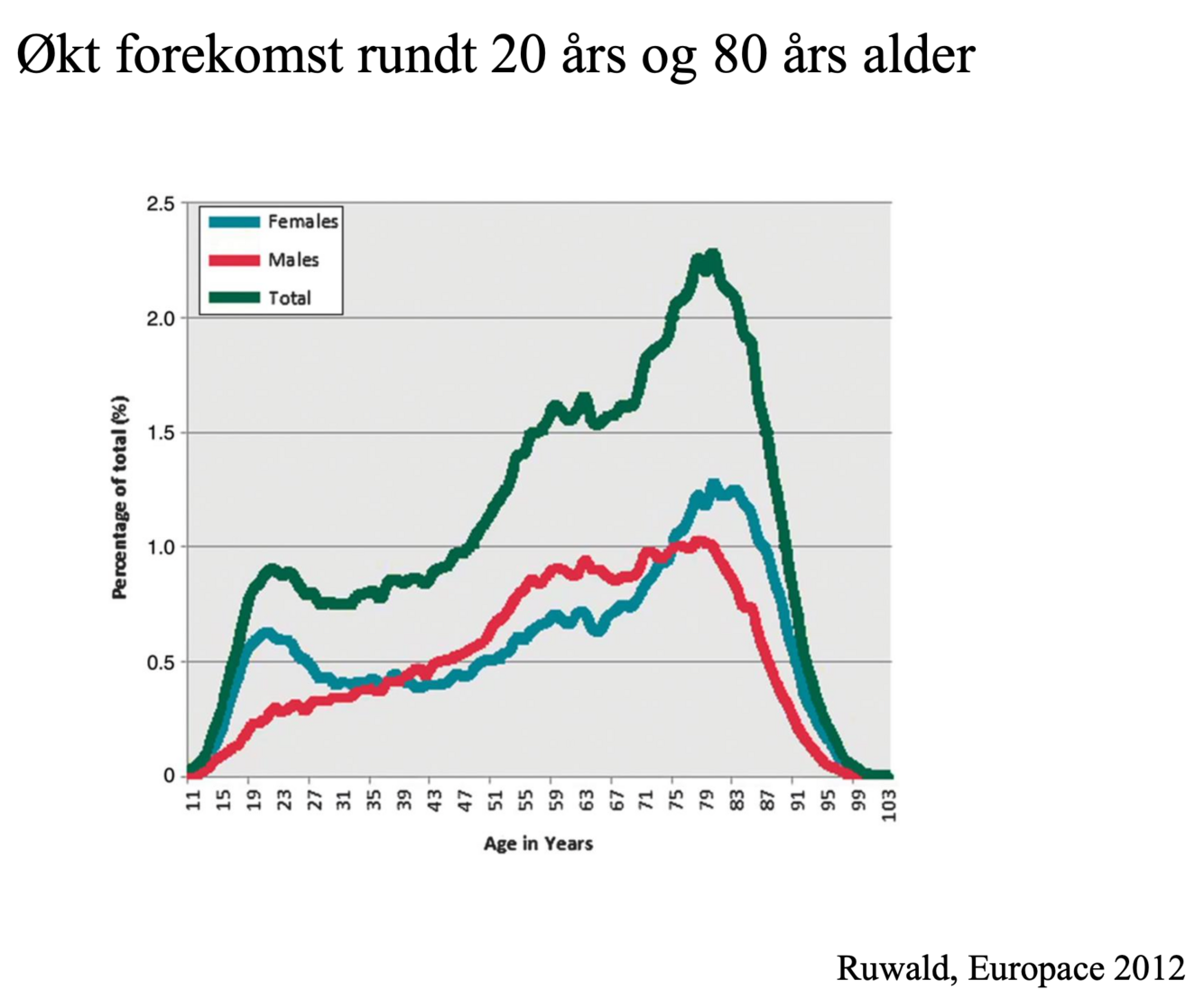 Hvordan er forekomset av synkope sett ut ifra alder?