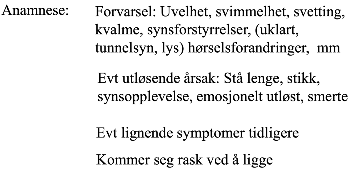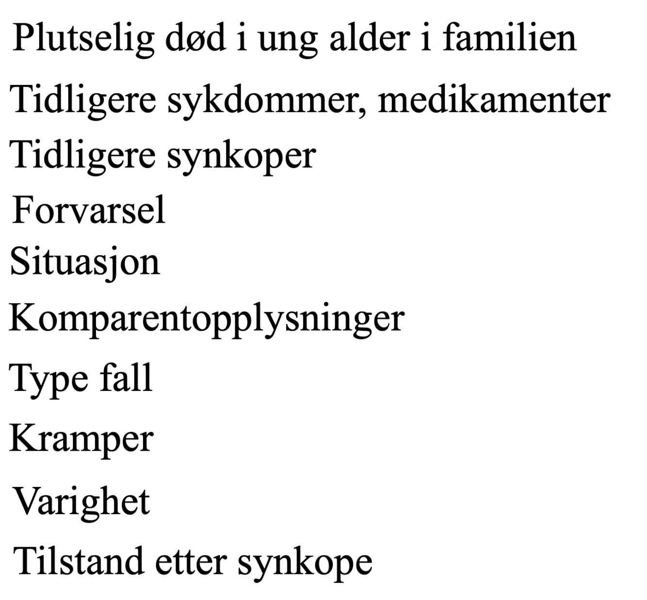 Hva er viktige anamnestiske opplysninger ved synkope?